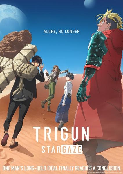 قصة انمي Trigun Stargaze لقد مضى عامان ونصف منذ مأساة لوست جولاي، التي دمرت مدينة بأكملها وأغرقت الكوكب كله في الفوضى. تواصل ميريل، التي أصبحت الآن صحفية مخضرمة، البحث عن فاش برفقة مساعدتها الصغيرة الجديدة ميلي، وتلتقي خلال رحلتها بـ وولفود. ومع عودة عمليات سرقة النباتات مرة أخرى، تشعر المجموعة بتآمر منظمة ميليونز نايفز خلف الكواليس. في الوقت نفسه، يتخذ فاش الاسم الجديد إيريكس ويعيش مختبئًا في بلدة نائية، حتى يزوره فجأة جيسيكا، فتاة صغيرة تحمل نداء استغاثة من السفينة الثالثة التي يسكنونها. عندها يقرر وضع حد للعداوة القديمة لحماية من يحبهم. ومع بداية تجميع أجزاء القصة مرة أخرى، يتلقى الكوكب رسالة من أطراف الفضاء البعيد: “نحن أسطول من سفن المستعمرات القادمة من الأرض… من يرغب يمكنه مرافقتنا إلى حدود جديدة.” يحتفل سكان الكوكب بأكمله بهذه الأخبار. ومع ذلك، وكأن الاحتفال هو سخرية، يعود الملاك ذو الجناح الواحد ليزرع الدمار واليأس، وتتلاقى المصائر لتشكل الخاتمة النهائية لكوكب في حالة ذعر.